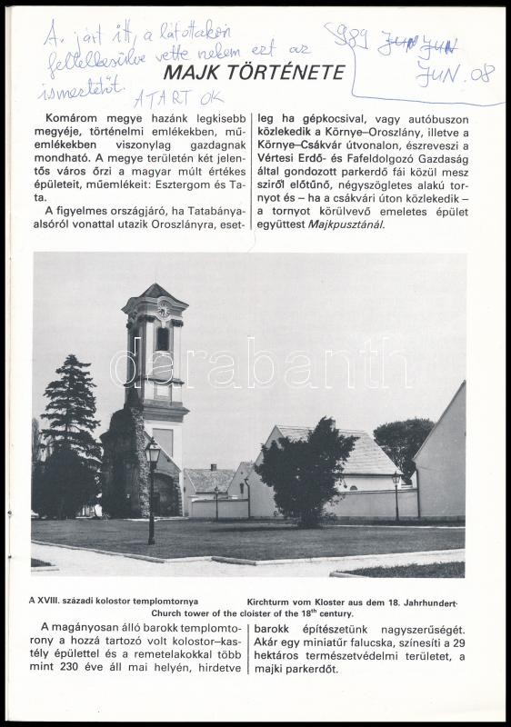 Leírás: Kulcsár Emil Miklós: Majk története. Majk, 1987. Szerzői. 28p.