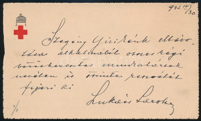 1942 Lukács Sarolta a M. Vöröskereszt alelnökének saját kezű levele és... https://www.darabanth.com/hu/425-Gyorsarveres/425.0/Mutargy-papirregiseg-egyeb/Alairas~500021/1942-Lukacs-Sarolta-a-M-Voroskereszt-alelnokenek-sajat-kezu-levele-es-alairasa~II2711570