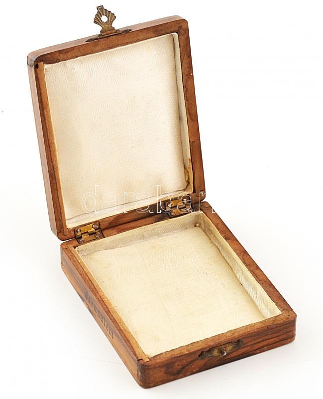 Leírás: Fa doboz faragott András kereszttel kitüntetésnek, selyem béléssel. 9x10 cm