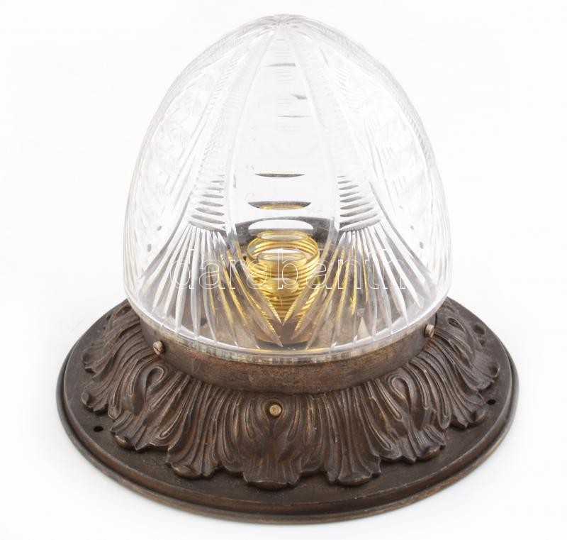 Leírás: Mennyezeti lámpa. Fém, üveg burával, hibátlan m: 16 cm d: 25 cm