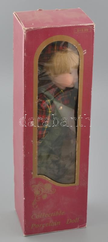 Leírás: Retró porcelán fiú baba, szép öltözékben, The Heritage Mint Collection, eredeti sérült dobozában, m: kb. 40 cm