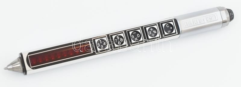 cca 1977 Satolex Calcu-Pen számológépes golyóstoll, különleges technikai ritkaság. kiváló, működő állapotban, eredeti dobozában, hozzá tartalék elem. / Vintage Calcu-pen calculator in original box