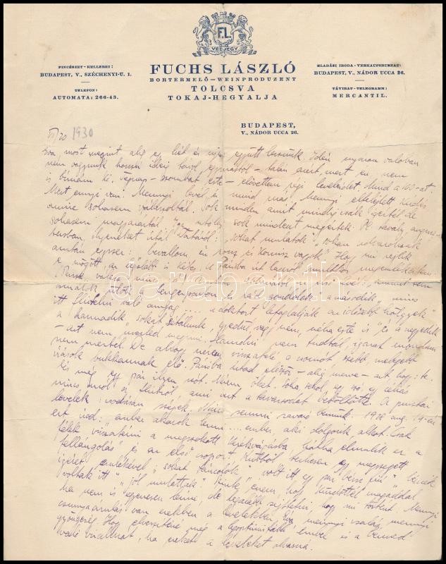 1930 Fuchs László bortermelő (Tolcsva, Tokaj-Hegyalja) fejléces levélp... https://www.darabanth.com/hu/425-Gyorsarveres/425.0/Mutargy-papirregiseg-egyeb/Okmanyok~500019/1930-Fuchs-Laszlo-bortermelo-Tolcsva-Tokaj-Hegyalja-fejleces-levelpapirjara-irt-level~II2709801