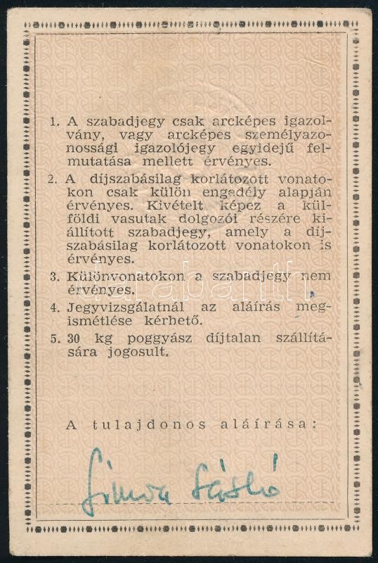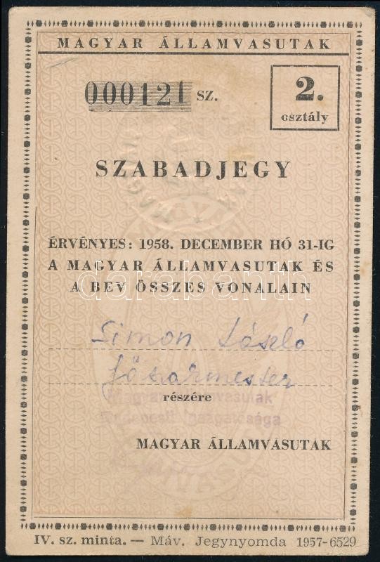 Leírás: 1958 MÁV éves szabadjegy
