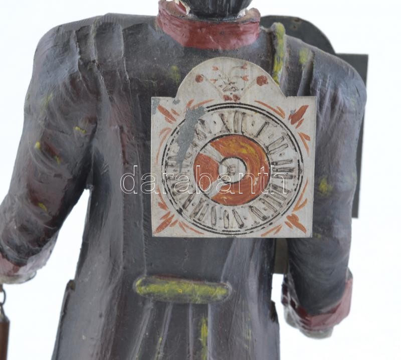Leírás: Antik figurális óra, mechanikus szerkezettel, kopásnyomokkal, működik, m: 37 cm