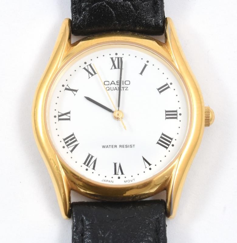 Leírás: Casio kvarc karóra, fekete bőr szíjjal, vízálló, működik