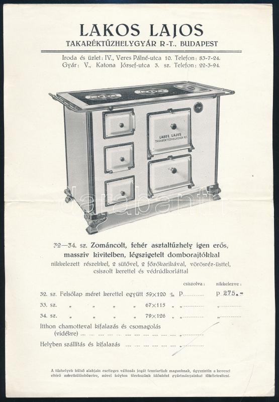 cca 1930 Lakos Lajos Takaréktűzhelygyár reklámlap, hajtott https://www.darabanth.com/hu/425-Gyorsarveres/425.0/Mutargy-papirregiseg-egyeb/Reklam~500024/cca-1930-Lakos-Lajos-Takarektuzhelygyar-reklamlap-hajtott~II2708856