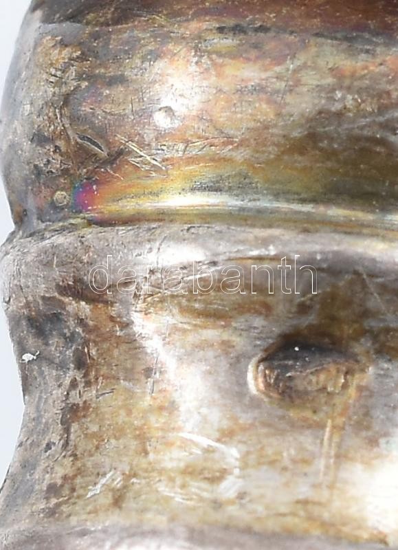 Leírás: Ezüst (Ag) nyelű torta kínáló, jelzett, kopott, h: 30 cm