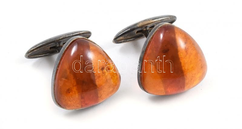 Leírás: Ezüst (Ag) + borostyán mandzsetta jelzett. 18 mm