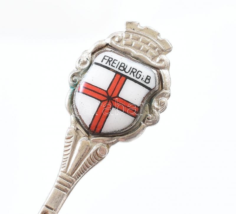 Leírás: Ezüst (Ag) zománcos dísz kanál Freiburg címerével, jelzett, h: 10 cm, bruttó: 7 g