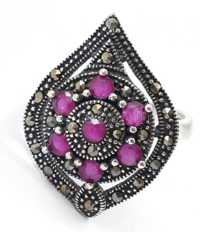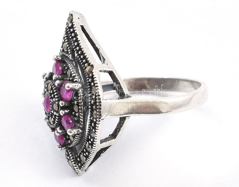 Leírás: Ezüst(Ag) gyűrű szintetikus rubinnal, jelzett, méret: 57, bruttó: 5,8 g