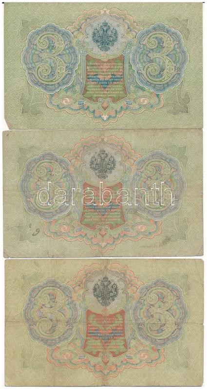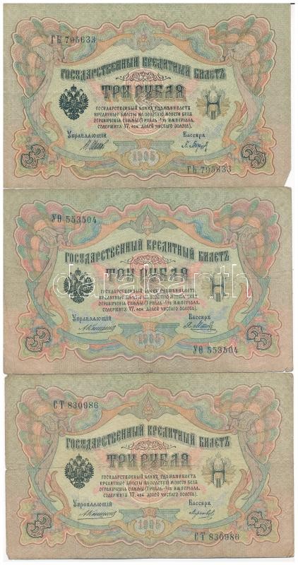 Russian Empire 1909-1912. (1905) 3 Rubles (2x) Sign.: Konshin + 1912-1917. (1905) 3 Rubles Sign.: Shipov C:F