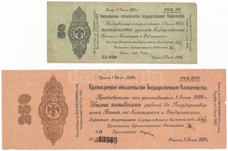 Orosz Birodalom / Polgárháború / Szibéria és Urál / Ideiglenes Szibériai Igazgatás 1920. 50R + 250R T:III kis beszakadás