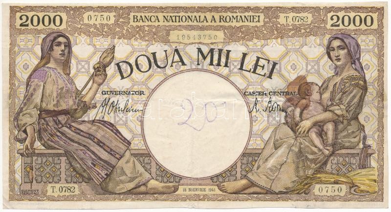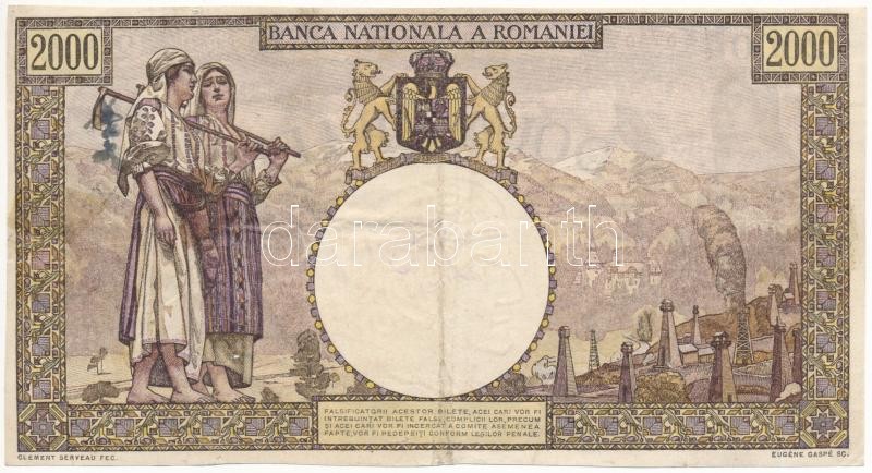 Romania 1941. 2000 Lei C:F pin hol... https://www.darabanth.com/hu/425-Gyorsarveres/425.0/Numizmatika/Kulfoldi-bankjegyek~1500014/Romania-1941-2000L-TIII-tulyukak-Romania-1941-2000-Lei-CF-pin-holes-Krause-P2353~II2710978
