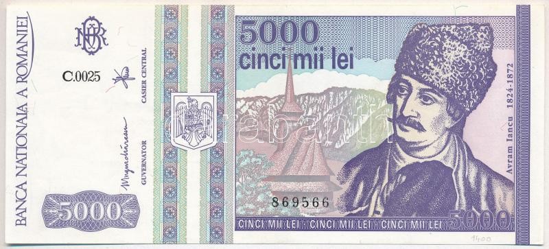 Romania 1993. 5000... https://www.darabanth.com/hu/425-Gyorsarveres/425.0/Numizmatika/Kulfoldi-bankjegyek~1500014/Romania-1993-5000L-C0025-869566-TII-Romania-1993-5000-Lei-C0025-869566-CXF~II2707971