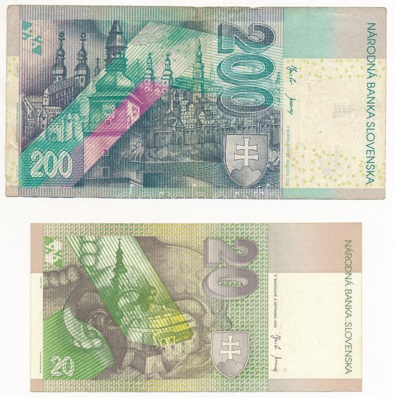 Slovakia 2002. 20... https://www.darabanth.com/hu/425-Gyorsarveres/425.0/Numizmatika/Kulfoldi-bankjegyek~1500014/Szlovakia-2002-200K-plus-2004-20K-TIII-kis-szakadas-Slovakia-2002-200-Korun-plus-2004-20-Korun-CF~II2702549