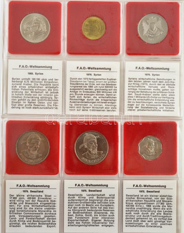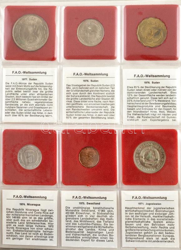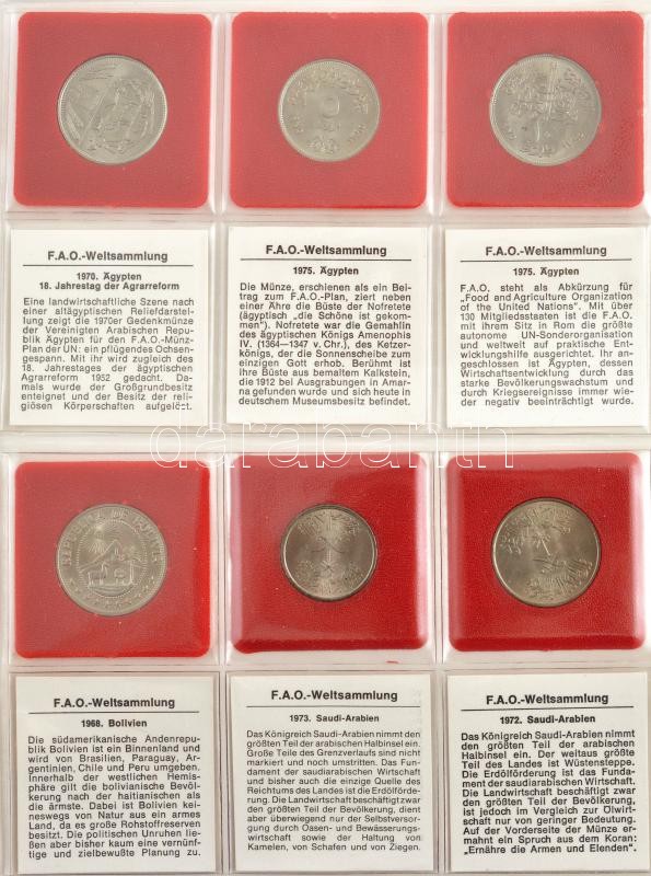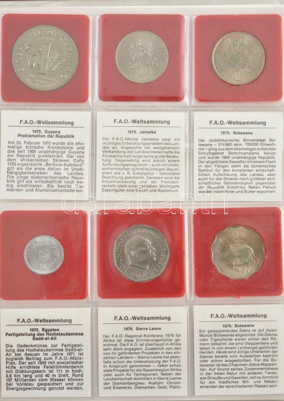 60xklf vegyes érmetétel, mind FAO emlékérme, tanúsítvánnyal, igényes műbőr albumba rendezve, benne rengeteg klf ország, köztük Szaúd-Arábia, Egyiptom, Szváziföld, Botswana, San Marino, Irán, Madagaszkár, Haiti, Jugoszlávia, stb. + Jamaica 1974. 2$ "FAO" bankjegy T:1-2,I 60xdiff mixed coin lot, all FAO commemorative coins, with certificates, in faux leather holder, within many diff countries, like Saudi Arabia, Egypt, Swaziland, Botswana, San Marino, Iran, Madagascar, Haiti, Yugoslavia, etc. + Jamaica 1974. 2 Dollars "FAO" banknote C:UNC-XF