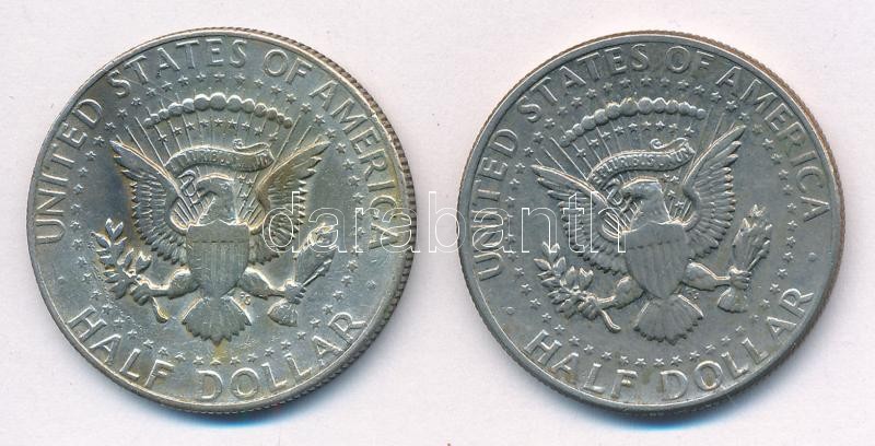 Amerikai Egyesült Államok 1969D 1/2$ Ag "Kennedy" + 1971. 1/2$ Cu-Ni "Kennedy" T:2,2- patina USA 1969D 1/2 Dollar Ag "Kennedy" + 1971. 1/2$ Cu-Ni "Kennedy" C:XF,VF patina Krause KM#202a