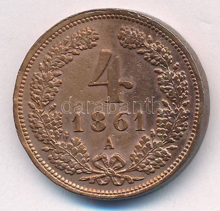 Ausztria 1861A 4kr Cu Bécs T:1-,2 kis ph. Austria 1861A 4 Kreuzer Cu V... https://www.darabanth.com/hu/425-Gyorsarveres/425.0/Numizmatika/Kulfoldi-fem-es-ezustpenzek~1500015/Ausztria-1861A-4kr-Cu-Becs-T1-2-kis-ph-Austria-1861A-4-Kreuzer-Cu-Vienna-CAU-XF-small-edge-erro~II2706861