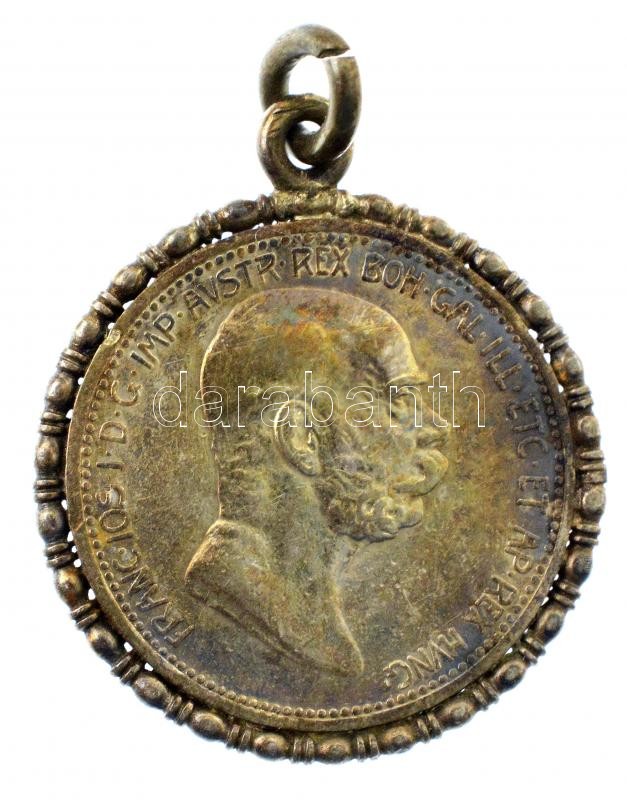Ausztria 1908. 1K Ag "Ferenc József - Jubileum" fém keretbe foglalva, füllel T:1-,2 patina, ü.