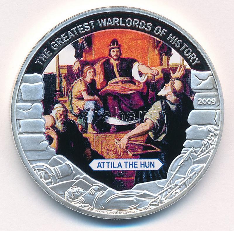 Libéria 2009. 5$ Cu "Nagy Hadvezérek - Attila hun király" multicolor festéssel, kapszulában T:PP
