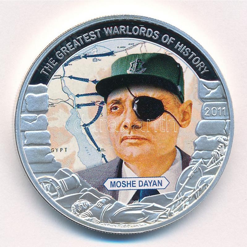 Liberia 2011. 5 Dollars Cu "The Greatest Warlords of History - Moshe Dayan" with multicolor picture, in capsule C:PP