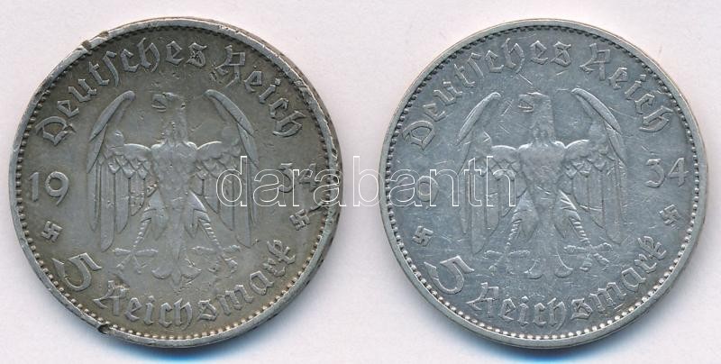 Német Harmadik Birodalom 1934A 5M Ag "Náci hatalom első évfordulója" (2x) T:2,2- egyiken ü. German Third Empire 1934A 5 Mark Ag "1st Anniversary of Nazi rule" (2x) C:XF,VF one with ding Krause KM#83