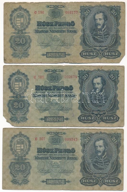 1930. 20P (3x) T:III- szakadások Adamo P11