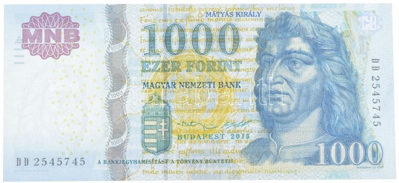 2015. 1000Ft "DD 2545745" T:I https://www.darabanth.com/hu/425-Gyorsarveres/425.0/Numizmatika/Magyar-bankjegyek~1500007/2015-1000Ft-DD-2545745-TI~II2705455