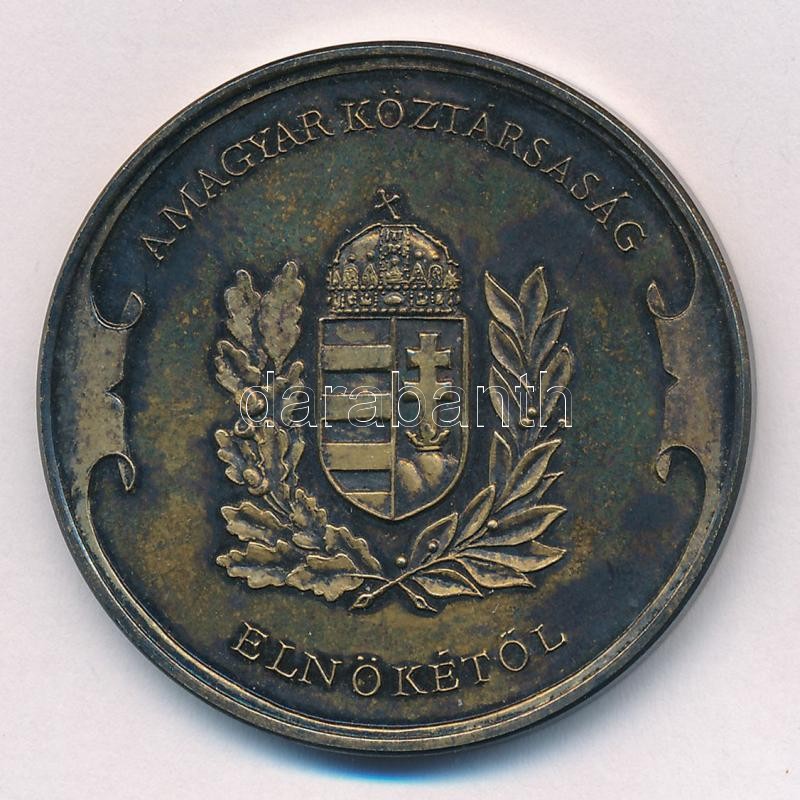 Leírás: Bozó Gyula (1913-2004) DN "A Magyar Köztársaság Elnökétől" kétoldalas, peremen jelzett Ag emlékérem (36,24g/0.925/42mm) T:1- patina, ujjlenyomat
