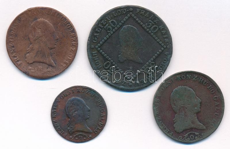 Leírás: 1800B 6kr Cu "I. Ferenc" + 1807S 30kr Cu "I. Ferenc" + 1812B 1kr Cu "I. Ferenc" + 1812O 3kr Cu "I. Ferenc" T:2-,3