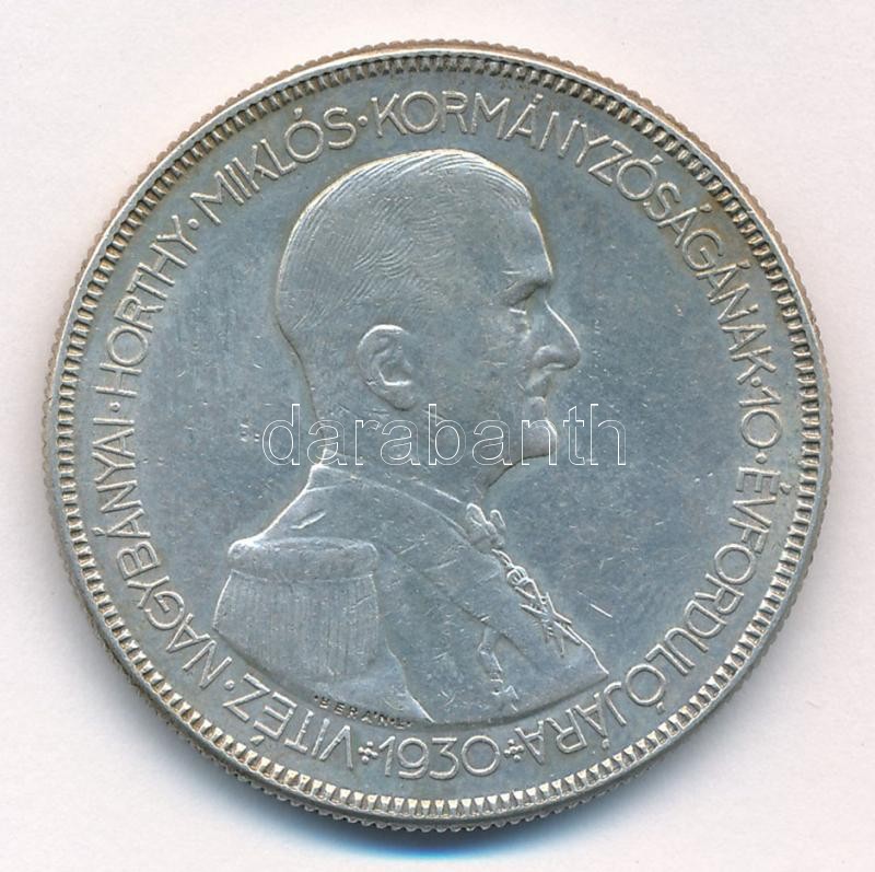 Leírás: 1930. 5P Ag "Horthy jobbra" hajas T:2,2- patina Adamo P8