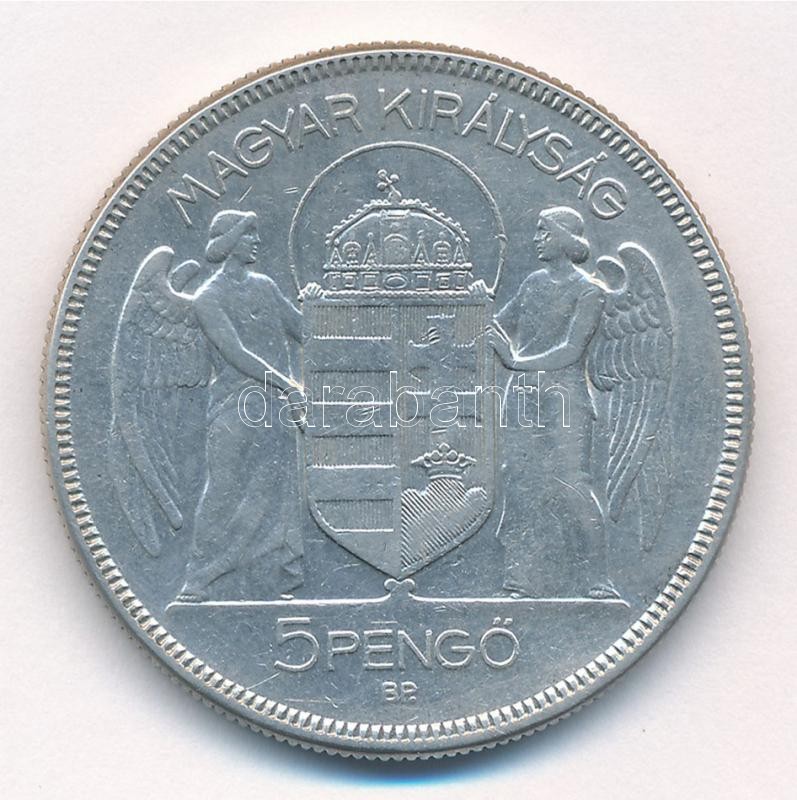 Leírás: 1930. 5P Ag "Horthy jobbra" hajas T:2 Adamo P8