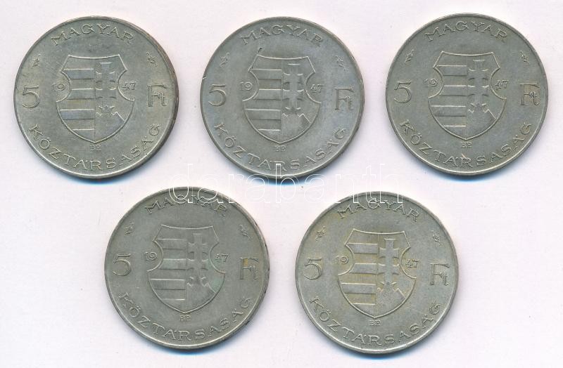 Leírás: 1947. 5Ft Ag "Kossuth" (5x) T:2,2- patina Adamo F8.1