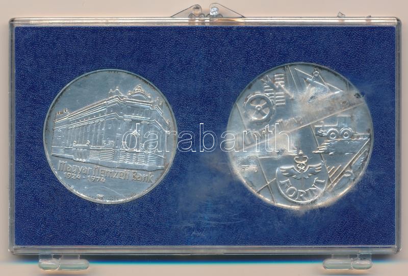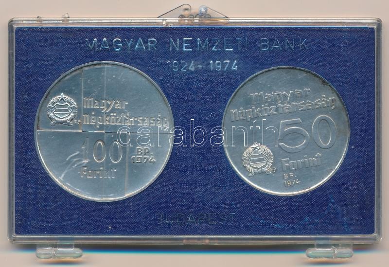 1974. 50Ft Ag "50 éves a Magyar Nemzeti Bank" + 100Ft Ag "50 éves a Magyar Nemzeti Bank" eredeti, sérült "MNB" műanyag tokban T:BU patina Adamo EM44, EM45