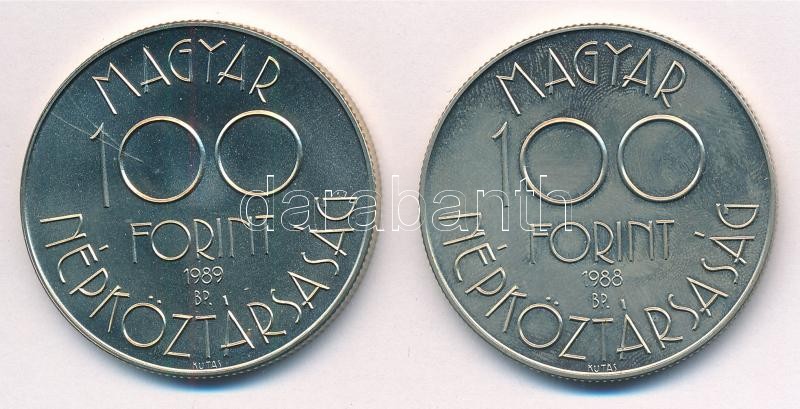 Leírás: 1988. 100Ft Cu-Ni-Zn "Labdarúgó Világbajnokság 1990 - Két játékos" + 1989. 100Ft Cu-Ni-Zn "Labdarúgó Világbajnokság - Kézfogás" T:BU kis patina