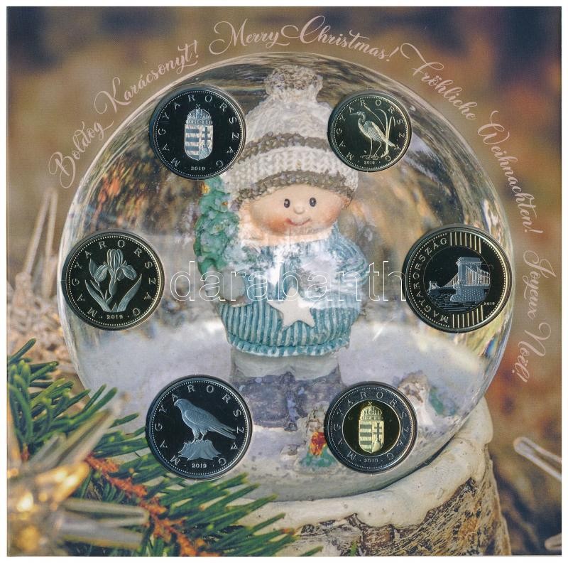 Leírás: 2019. 5Ft-200Ft (6xklf) + "Boldog Karácsonyt" Cu-Zn emlékérem, forgalmi szett dísztokban T:PP