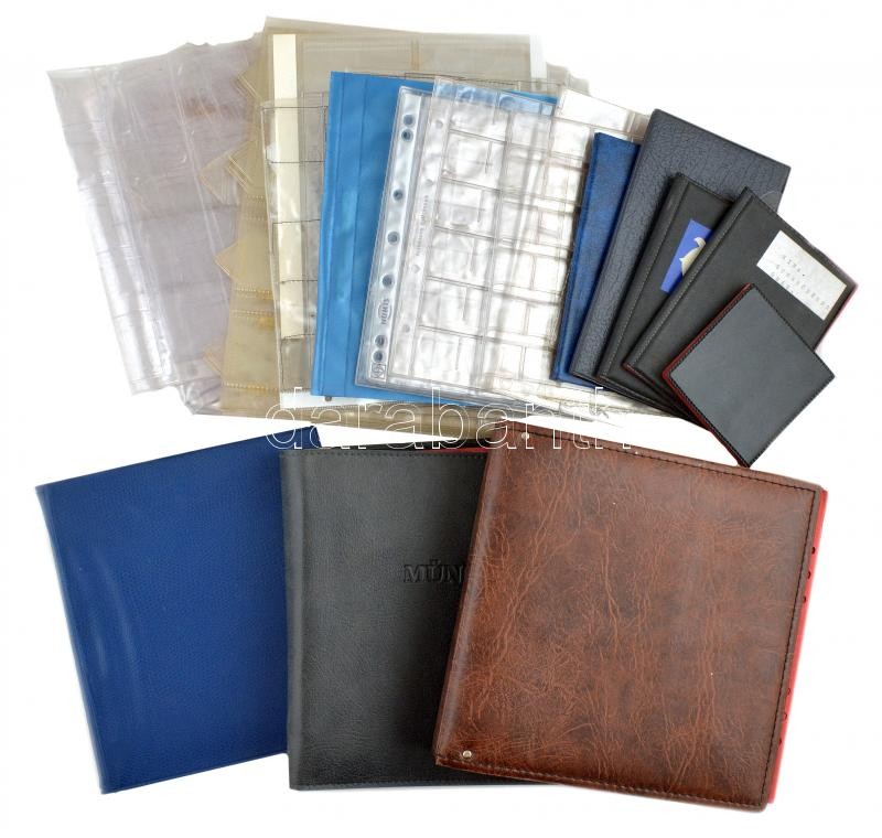 Leírás: Kisebb kartondoboznyi használt berakó és berakólap tétel, közte 3 gyűrűsmappa és öt darab kisalakú illetve zsebberakó, használt állapotban