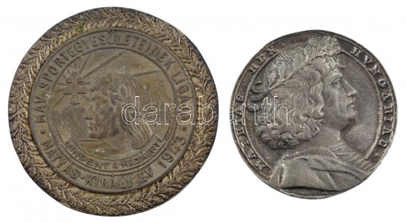 Leírás: 1943. "MÁV Sportegyesületeinek Ligája - Mátyás király év 1943" kétoldalas, ezüstözött Br díjérem, hátoldalán gravírozva (~50mm) + DN "Mathias Rex Hungariae" fém emlékérem (41mm) T:2,2-