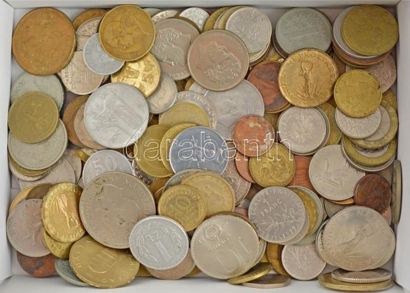 Leírás: Vegyes, magyar és külföldi érmetétel mintegy ~1kg súlyban T:vegyes Mixed, Hungarian and foreign coin lot (~1kg) C:mixed