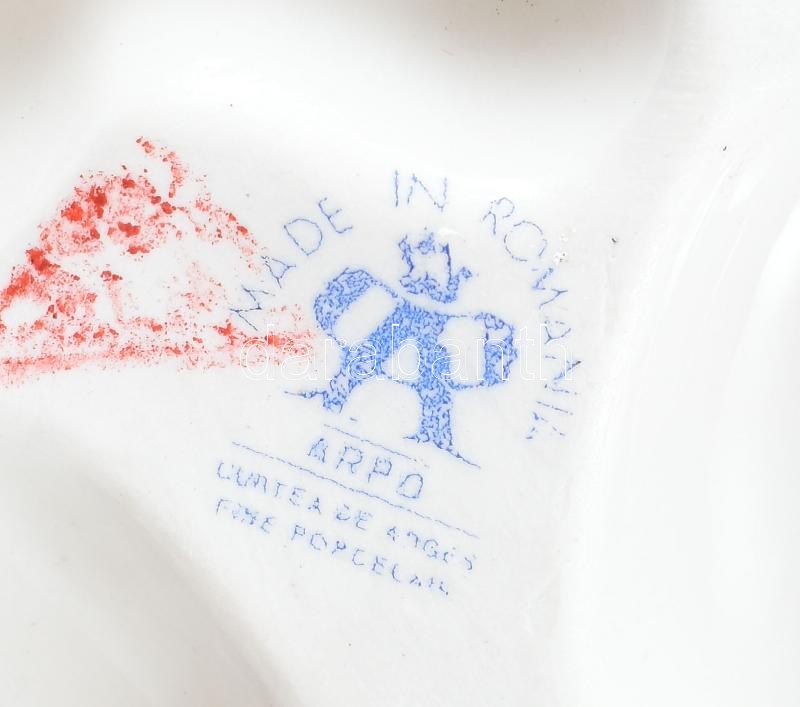 Leírás: Arpo román porcelán lány virágkosárral és báránnyal. Kézzel festett, jelzett, minimális kopással, m: 24 cm