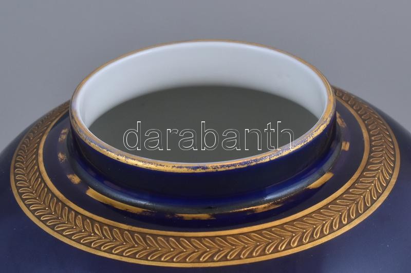 Epiag Pirkenhammer fedeles díszváza, kobaltkékkel festett porcelán, pl...