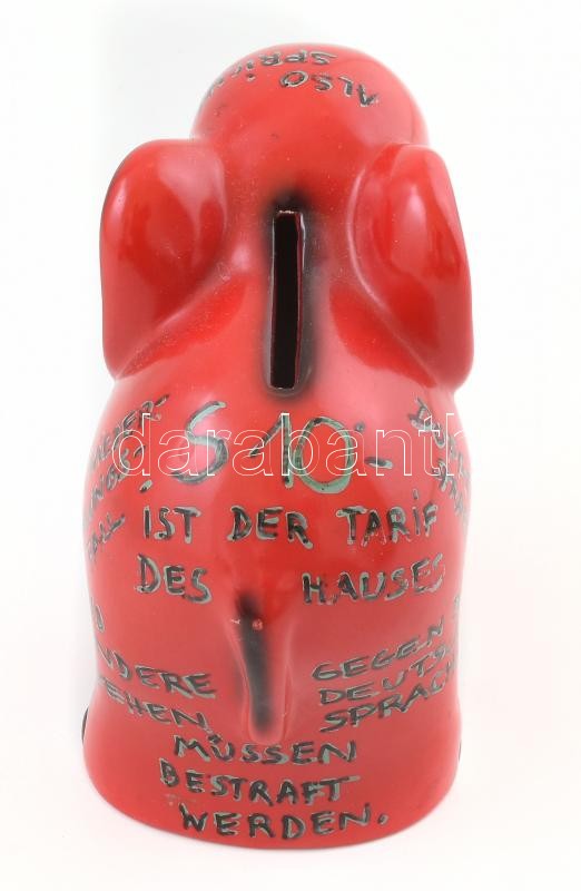 Leírás: Goebel fajansz persely, elefánt figura, jelzett, kézzel írt szövegekkel, kopásnyomokkal, m: 12 cm.