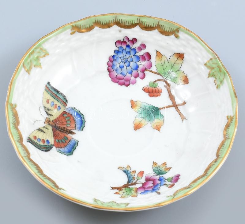 Leírás: Herendi 1946 porcelán Viktória mintás mokkás csésze alj, kézzel festett, jelzett, kopott!!, m: 10,5 cm