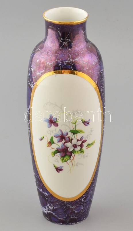 Leírás: Hollóházi porcelán márványmintás, irizáló porcelán váza, matricás, jelzett, kis kopásnyomokkal, m: 26 cm