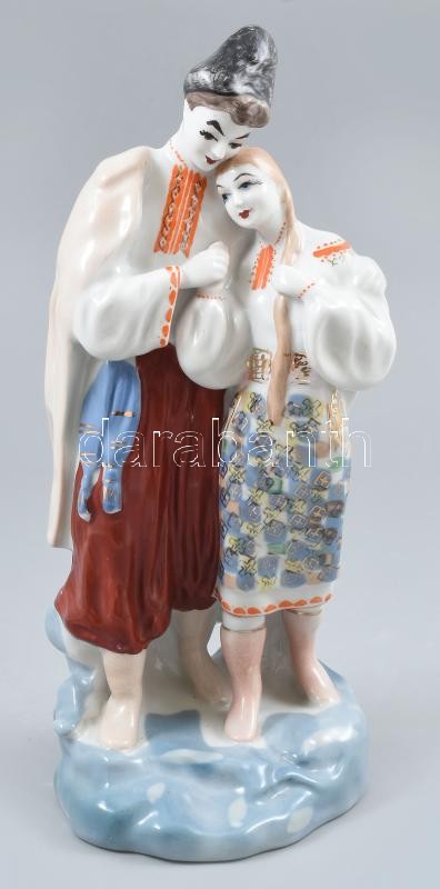 Leírás: Szerelmespár népviseletben, orosz porcelán figura. Kézzel festett, jelzett, hibátlan, m: 27 cm