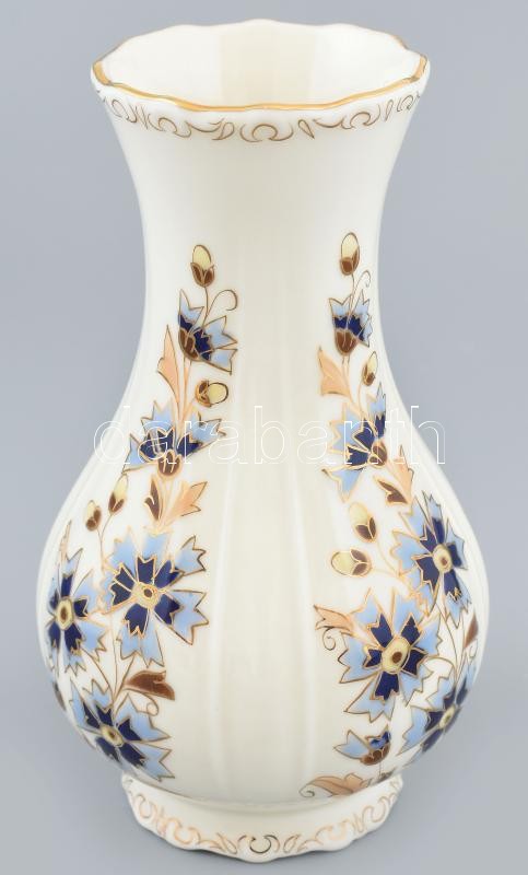 Leírás: Zsolnay porcelán búzavirágmintás váza, kézzel festett, jelzett, hibátlan, m: 18,5 cm