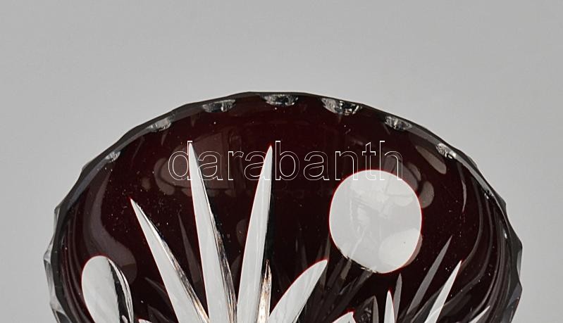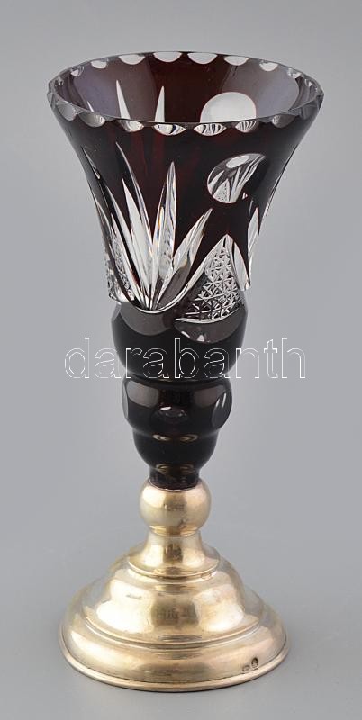 Leírás: Bordó ólomkristály váza / serleg, jelzett ezüst (Ag) talppal, m: 18,5 cm