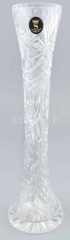 Leírás: Dúsan csiszolt ólomkristály váza, hibátlan, etikettel jelzett. m: 35,5 cm