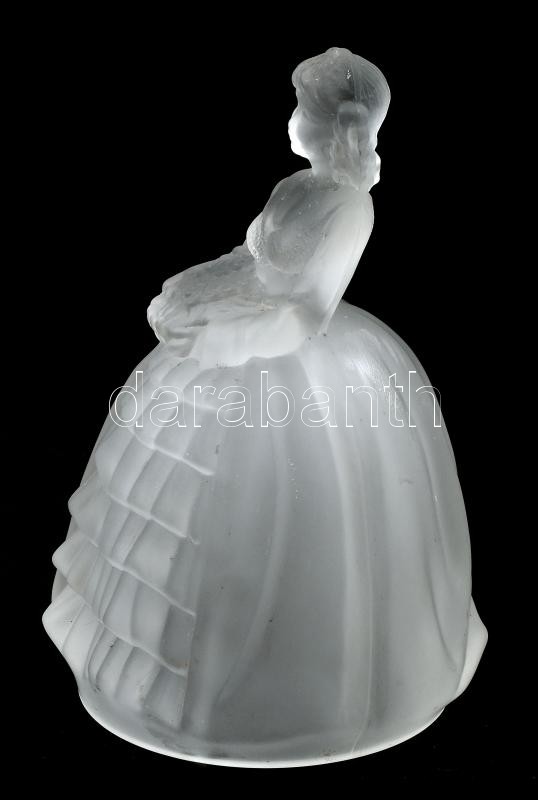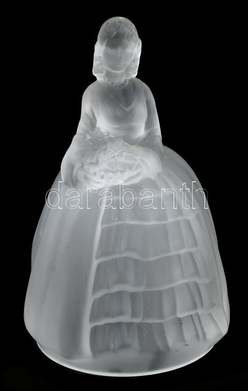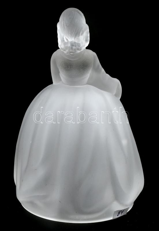 Leírás: Lalique jelzéssel, savmaratott üveg hölgy, kopásnyomokkal, m: 15 cm
